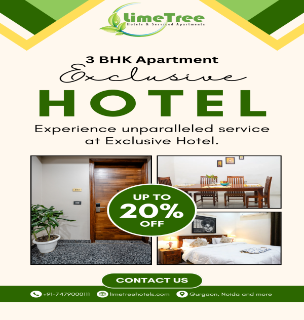 Looking for a spacious and comfortable 3 BHK service apartment near you? Lime Tree Hotels offers premium fully furnished 3 BHK apartments in prime Gurgaon locations like DLF Phase 5 and near Medanta Hospital. Ideal for families, corporate guests, or long stays, our apartments feature modern amenities, daily housekeeping, Wi-Fi, and 24/7 security—giving you the comfort of a home with the service of a hotel. Experience convenience and quality living with Lime Tree.