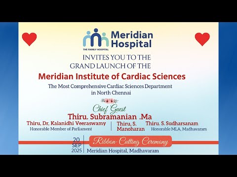 Meridian Super Specialty Hospital is a state-of-the-art 300-bed multi-super specialty hospital located in the heart of Kolathur and Madhavaram, Chennai. Designed to meet global healthcare standards, our facility features a 65-bed ICU with smart monitoring systems, ensuring critical care is delivered with speed, precision, and compassion. Renowned for our excellence across a wide range of tertiary care specialties, Meridian is home to expert doctors, modern medical technology, and patient-first services. From cardiology, neurology, and nephrology to orthopedics, oncology, and emergency care, we provide complete healthcare solutions under one roof. What sets us apart is our commitment to combining quality with accessibility.