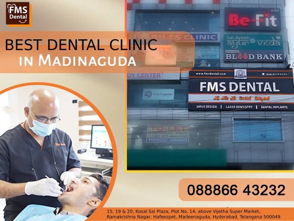 Best Dental Clinic in Chandanagar & Madinaguda, Hyderabad. FMS Dental Hospitals with over 2 decades of experience in Creating miles of Smiles is the Best Dental Clinic the services offered here are Dental Implants, Smile Designing, teeth scaling or cleaning, teeth filling, Root Canal Treatments, teeth whitening, dental veneers, Laminates, Gum contouring,gum depigmentation, orthodontics, braces treatment, ceramic braces, clear aligners, invisible braces, lingual braces, all-on- 4 dental implants, dental implants, zygoma implants, over dentures, LASER root canal treatment, TMD therapy, wisdom tooth extractions, surgical extractions, surgical orthodontics, Best Dentist in Chandanagar & Madinaguda Hyderabad.