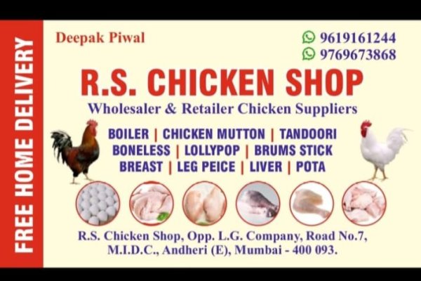 Welcome to RS Chicken Shop - Chicken Shop in Andheri east, your one-stop destination for high-quality, fresh chicken in Andheri East. We offer a wide range of chicken products, including fresh cuts, cleaned and ready-to-cook chicken, and special orders to suit your needs. Our shop is known for its top-notch hygiene, competitive prices, and friendly customer service. Whether preparing a family meal or hosting a party, RS Chicken Shop ensures you get the finest chicken every time. Visit us today or contact us. We also take bulk chicken orders for parties.