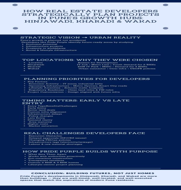 Discover how Pune’s booming suburbs—Hinjawadi, Kharadi, and Wakad—are becoming prime destinations for 3 BHK flats in Pune. This infographic breaks down how leading real estate developers strategically plan projects in these high-growth corridors. Learn about key factors like metro connectivity, IT hubs, infrastructure upgrades, and shifting homebuyer preferences that make 3 BHK homes the ideal choice for modern families and investors in Pune.
