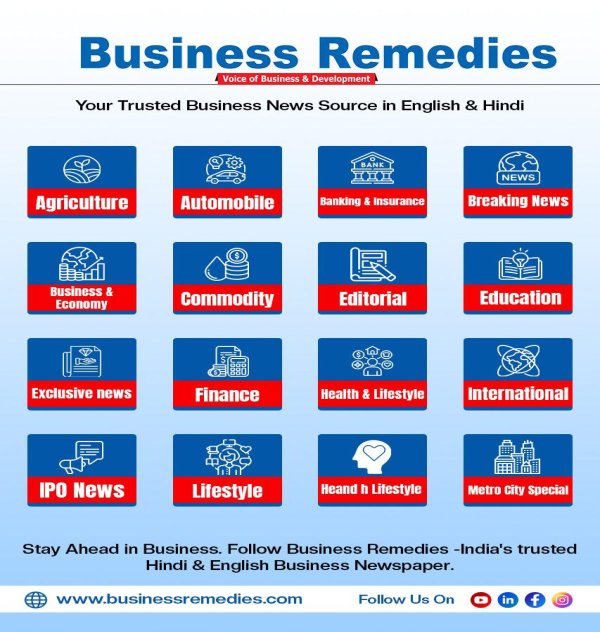 Business Remedies is a Hindi business news platform covering IPO, share market, financial market, automobile, and economy news. Based in Jaipur, Rajasthan, it offers timely updates, expert analysis, and share market information in Hindi through its e-paper