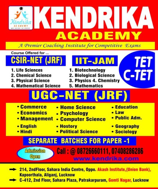 Kendrika Academy is well known Test Prep institute working since 2008. We are providing Coaching and Guidance for various Competitive Exams in Classroom and Online mode. We are specialized in CSIR-UGC-NET / GATE / IIT-JAM / GPAT etc. Exams. We are India’s first academy to provide Online "LIVE" Classes for the preparation of these exams. We have a pool of highly experienced and extra brilliant faculty members who are products of IITs, various CSIR Labs & other top institutes with cutting edge teaching methodologies have unmatched track record of mentoring the toppers. Our faculties have a passion for teaching, understand student psychology and are experts in counseling & motivating students to excel in their endeavors. We use a holistic approach to prepare them for the competitive examinations by developing scientific temperament & logical thinking. Transforming the dreams of many students into a reality by understanding their needs, and delivering beyond their expectations. We are committed to provide high quality practice based training programs coupled with well researched study material and thereby create the best value for our students. The study material covers every aspect of each topic and is completely self-sufficient. So much is our confidence in our study material, that we consciously ask our students to rely solely on our study material, and not consult any other book or guide. We regularly upgrade our course material with appropriate modifications to meet the changing pattern and syllabus of the various exams every year.